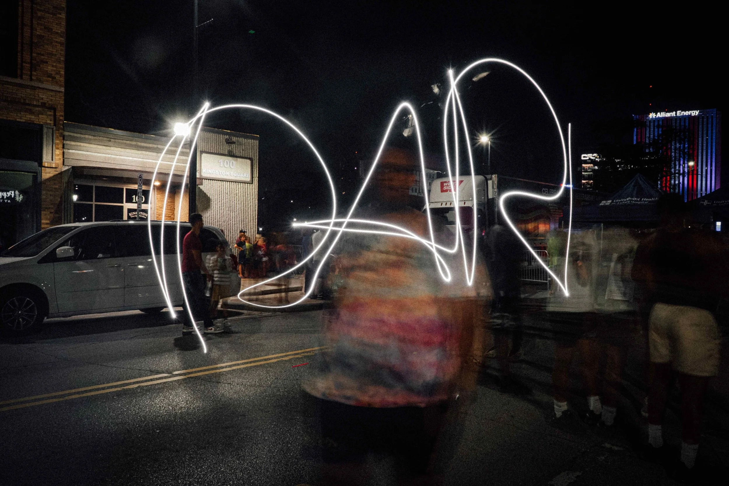 STARTING IN IOWA CITY, IOWA. IF THIS EVENT STARTED AT 9:30PM, I HAD THE IDEA TO SHOW UP AT 9:00PM. IT WAS SUPER LAST MINUTE BUT I SAW AN OPPORTUNITY AND TOOK IT. THE GOAL I HAD SET OUT FOR MYSELF WAS TO GET BETTER AT LOW LIGHT PHOTOS AND LIGHT TRAILS. I HAD A PAID SHOOT COMING UP IN A FEW DAYS AND NEEDED TO LOCK IN MY SETTING SO THIS FIRST DAY WAS FOR THAT. I DIDN’T REALLY KNOW WHAT TO EXPECT, BUT WHEN I GOT HOME AND EDITED ALL THE CONTENT, I KNEW I NEEDED A SECOND ATTEMPT. AS YOU CAN SEE BELOW, THESE PHOTOS ARE OKAY, BUT THERE NOTHING SPECIAL. I HAD A CONVERSATION WITH A PHOTOGRAPHER WHO WORKED FOR THE UNIVERSITY OF IOWA AND HE TOLD ME WHAT I NEEDED TO DO DIFFERENT TO TAKE PHOTOS IN SITUATION LIKE THIS AND I DID JUST THAT A FEW DAYS LATER. WHICH LEADS US TO WHAT HAPPENED IN CEDAR RAPIDS, IOWA FOR THE 4TH OF JULY FREEDOM FESTIVAL EVENT.