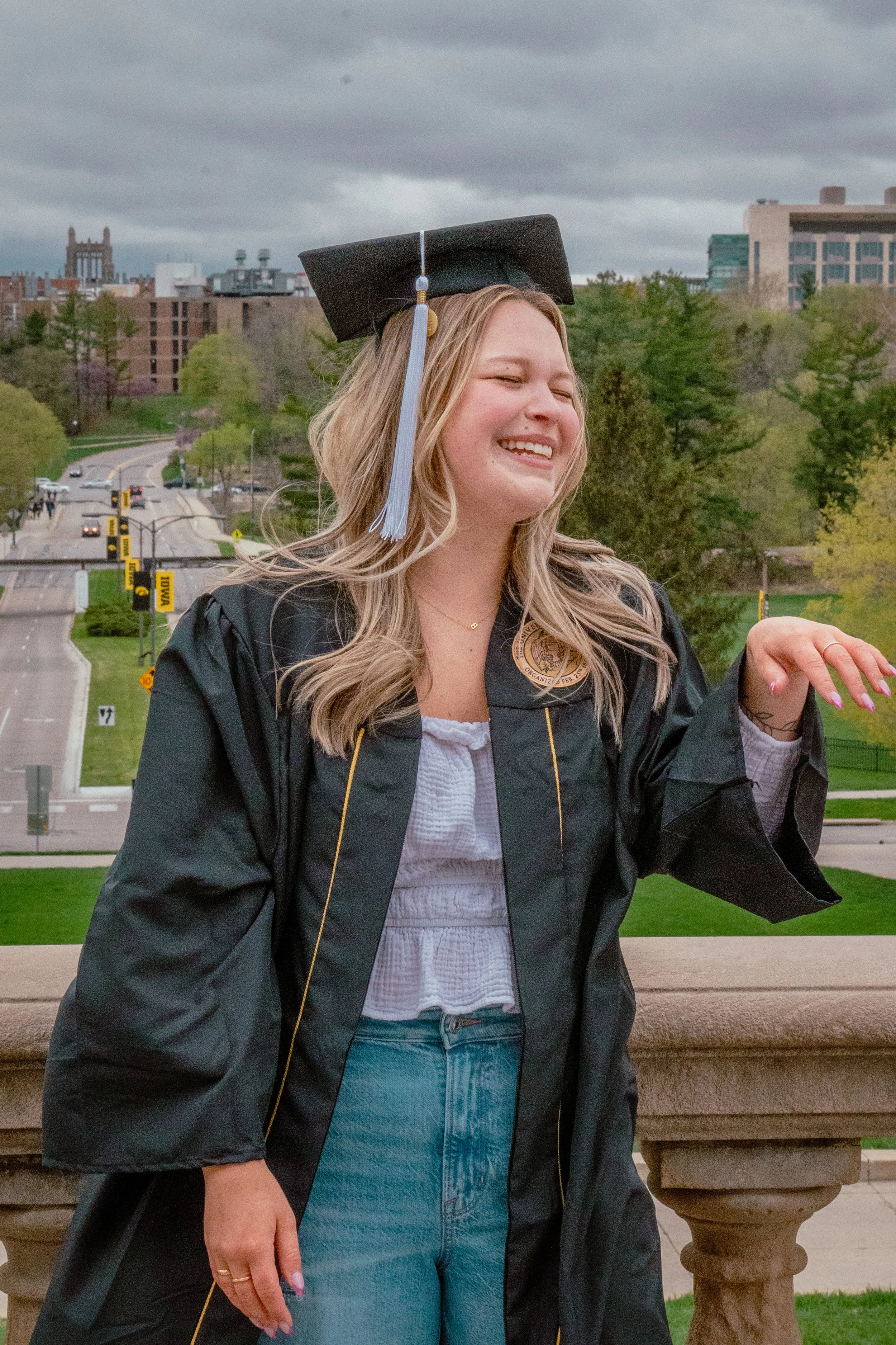 BRANDI WAS A FRIEND OF A FRIEND WHEN SHE CAME TO DSP, AND LEFT FEELING PROUD AND SEEN FROM OUR SESSION ON 4-21-2023. BRANDI IS A GREAT HUMAN-BEING AND SPENT MUCH OF HER TIME AT THE UNIVERSITY OF IOWA WORKING WITH THE NEXT GENERATION OF YOUNG PEOPLE IN OUR COMMUNITY. FROM COURSE WORK, TO THE DAY JOB, THE CLASS ROOM TO VOLUNTEERING, BRANDI HAS ALWAYS WORK HARD TO STAND OUT, AND GO ABOVE AND BEYOND FOR THOSE SHE CARES ABOUT. SHE LOVES HER FAMILY AND SURE DOES LOVE HER FRIENDS, WHICH LEAD UP TO THIS SENIOR PORTRAIT SESSION ON THE CAMPUS OF THE UNIVERSITY OF IOWA.